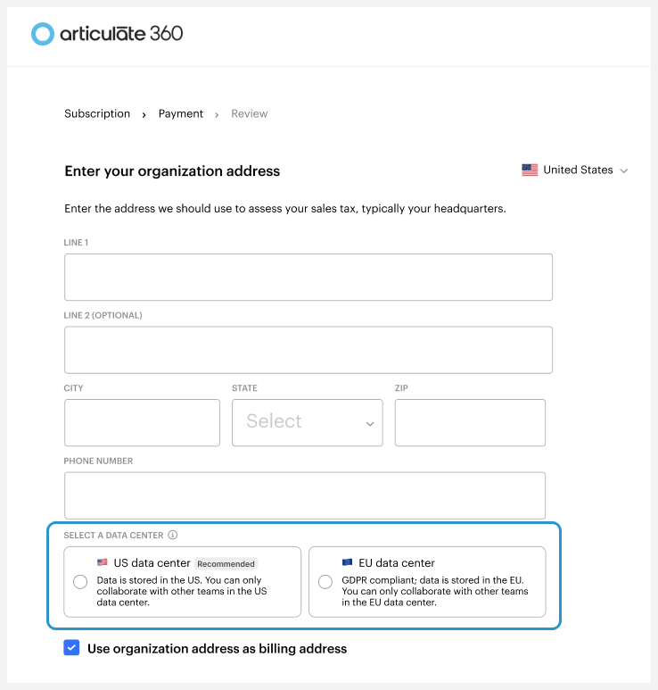 While we have separate U.S. and EU versions of Articulate 360 apps, all Articulate 360 subscribers use the same account management console since our Okta authentication subprocessor resides in the United States.